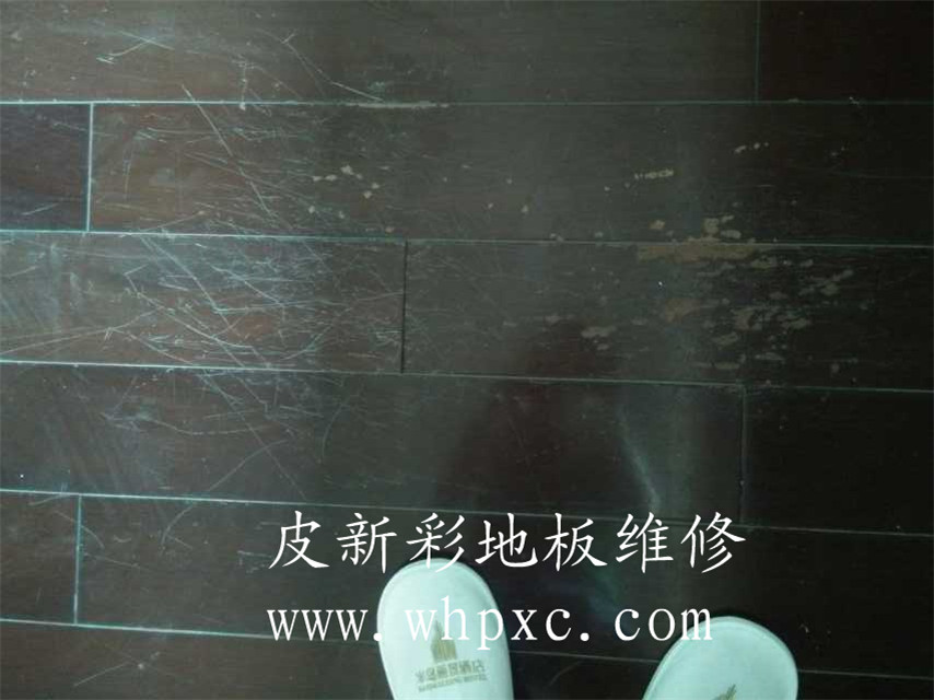 地板劃傷補漆,老地板劃傷補漆,這種地板太老舊了,要想做好需要整個打磨翻新,客戶是租住房東的房子,不想花太大的代價只選擇修補,這地板已經沒有太多維修價值了,皮新彩地板維修熱線:13995508166