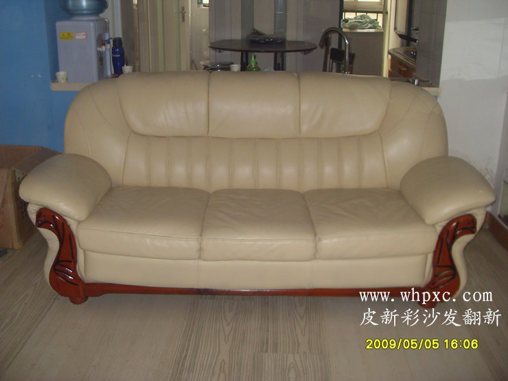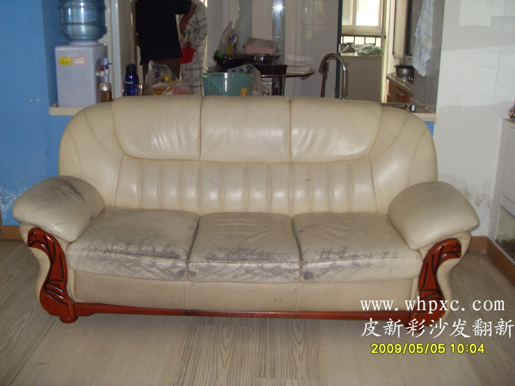 二層皮沙發翻新,這個皮沙發用了3年出現炸裂掉渣,上色翻新后也保持不了多長時間,最好是換皮,但是客戶是租住房東的房子換皮代價太高,就做了上色翻新,這個沙發是1+1+3價值為6000左右。如果換汽車仿皮可以用5至8年不會壞,費用為2000左右,換皮熱線13554633331