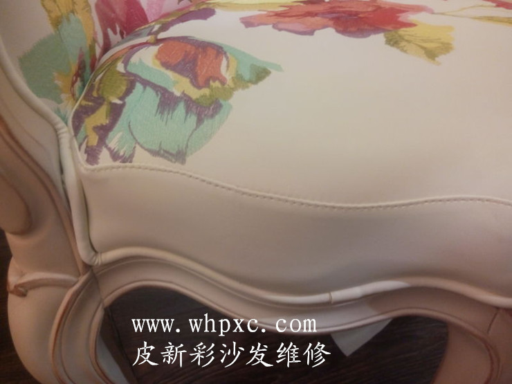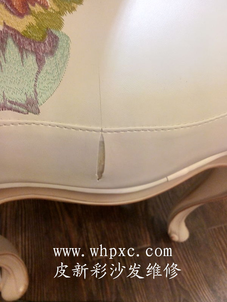 沙發修補,仿皮印花沙發,開包時給刀片劃穿了,傷口長20厘米,不修又配不到帶花的皮子,一般師傅是修不好的,我們用專用膠水粘好后,再用補傷膏填平、打磨、上色,修好了就看不到痕跡,皮新彩沙發維修熱線:13995508166