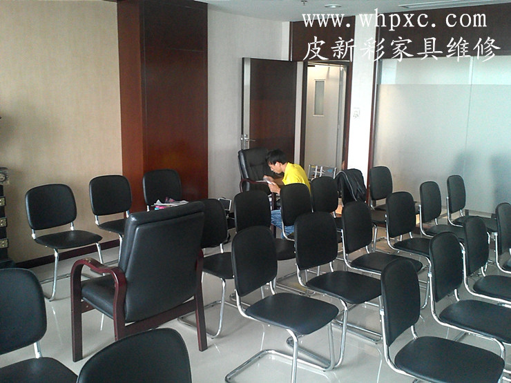 辦公家具維修,圖書出版城會議室皮椅維修,皮椅子出現煙頭燙傷鑰匙刮破,我們進行局部修補,讓皮椅完美無缺,皮新彩辦公家具維修:13995508166