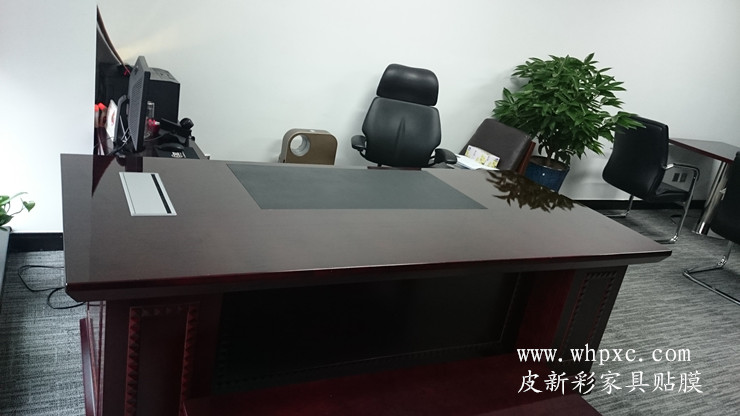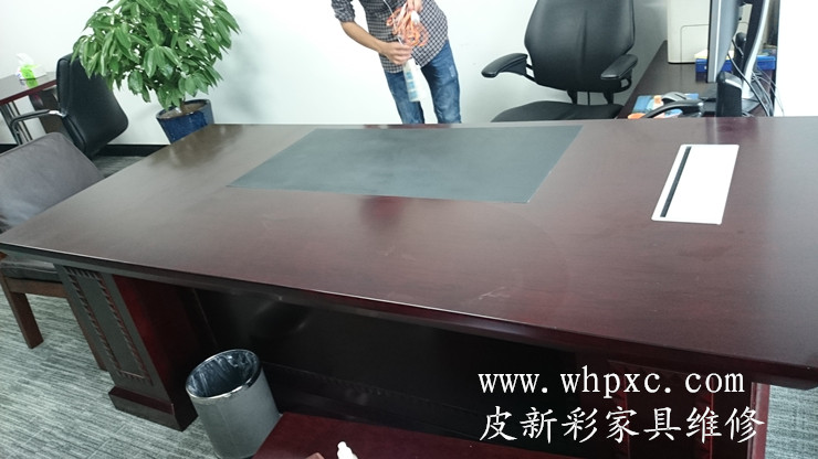 長江水利委員會家具貼膜維修工程,嶄新的辦公家具漆膜太薄,水杯一燙漆面就發白,做衛生水沒有擦干凈也發白,我們給出兩種方案,貼膜和噴漆,還是貼膜效果好又環保,皮新彩辦公家具維修13995508166