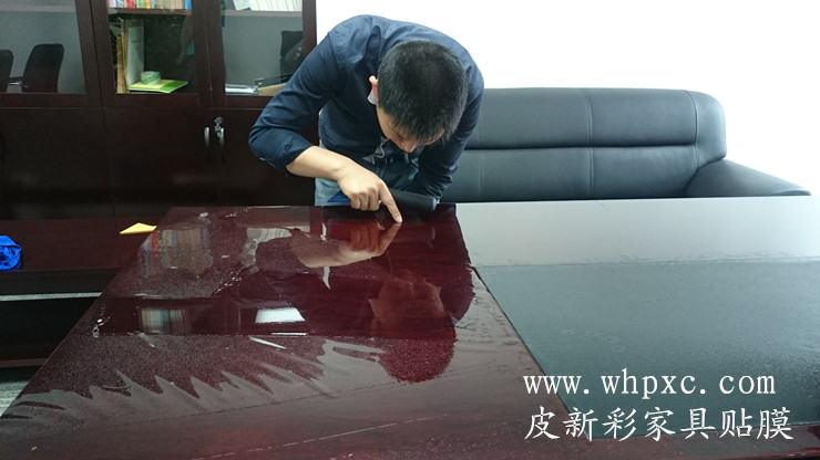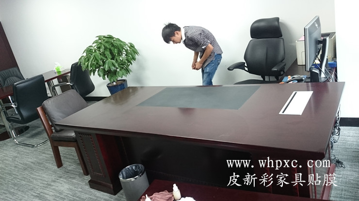 長江水利委員會家具貼膜維修工程,嶄新的辦公家具漆膜太薄,水杯一燙漆面就發白,做衛生水沒有擦干凈也發白,我們給出兩種方案,貼膜和噴漆,還是貼膜效果好又環保,皮新彩辦公家具維修13995508166