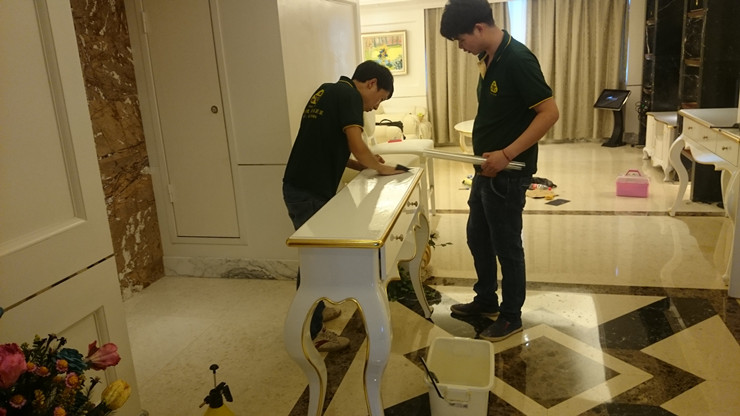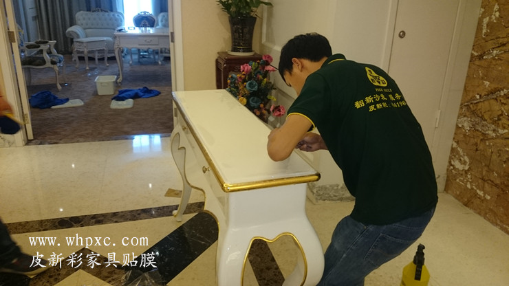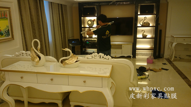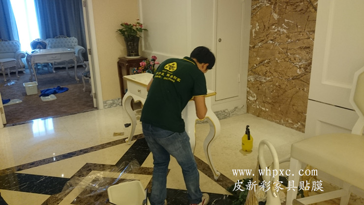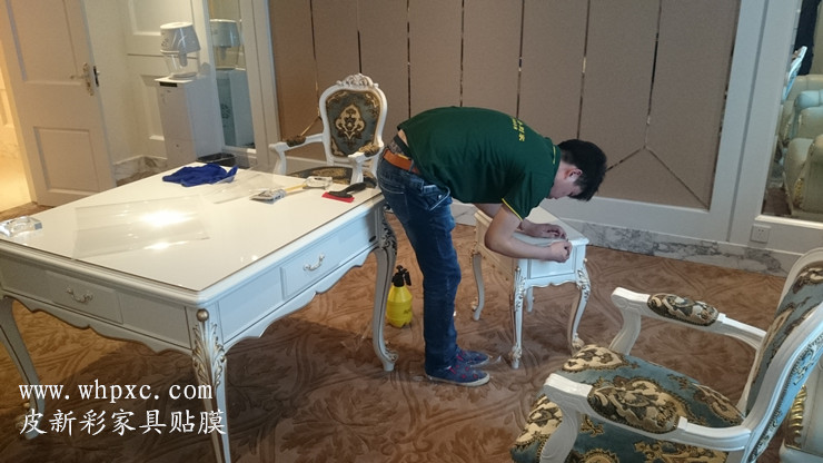 四星級鐵路匯通酒店,家具維修貼膜工程,這是匯通酒店最大的一間客房,叫總統套房,白色烤漆家具貼透明膜,貼完膜之后比烤漆還亮,皮新彩家具貼膜13995508166