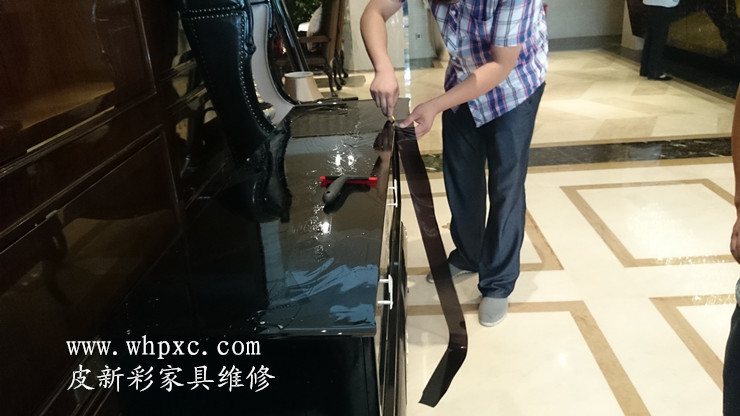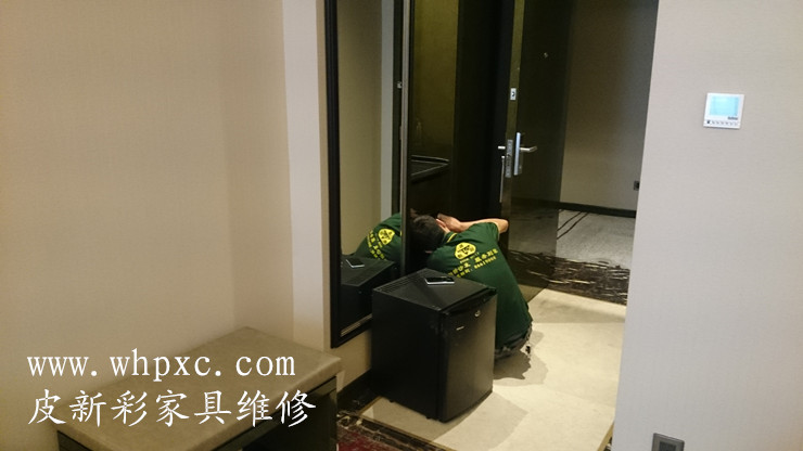 美辰悅尚酒店家具維修美容,新開業的酒店衣柜打錯孔、門邊有磕碰,平面家具整個做了貼膜保護,比較有品位的一家酒店,皮新彩酒店家具維修:13995508166