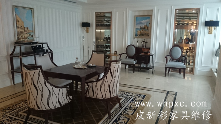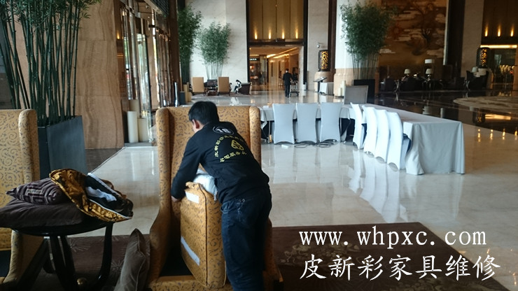 萬達威斯汀酒店大堂沙發換布填充由“皮新彩家具護理公司提供”五星級酒店對家具品質的要求還是很高的嗎,家具磕碰了、沙發塌陷都得定期維修,皮新彩酒店家具維修電話13995508166