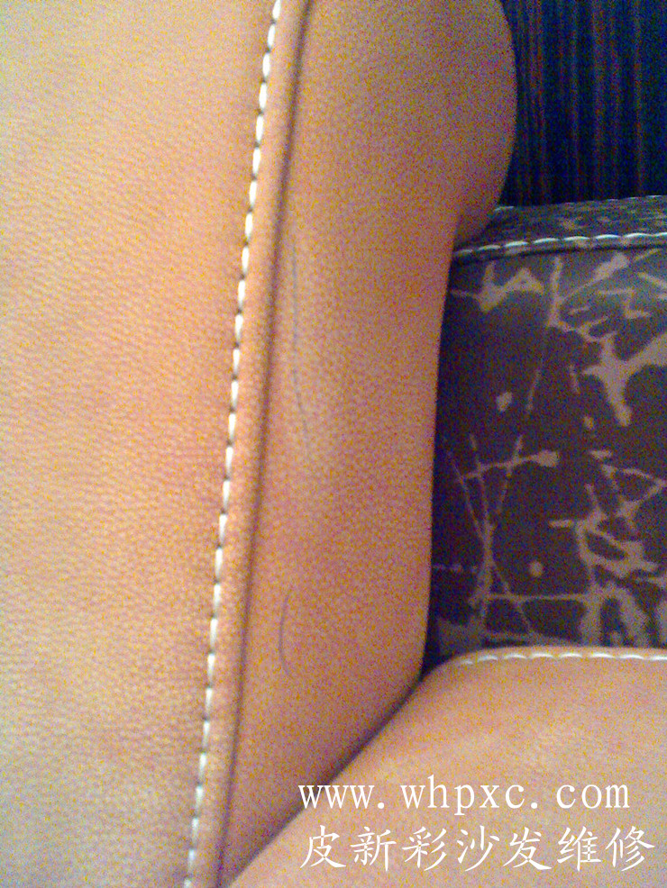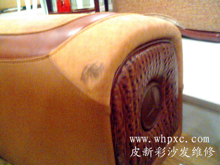 磨砂皮維修,這個扶手被修壞了,用了502粘過變黑發硬,上色材料也不對,我們用502清除劑清洗過后,再用磨砂皮成膜劑專用的補傷膏進行修復還原,沒有專業的材料就容易把磨砂皮修壞,皮新彩沙發維修熱線:13995508166