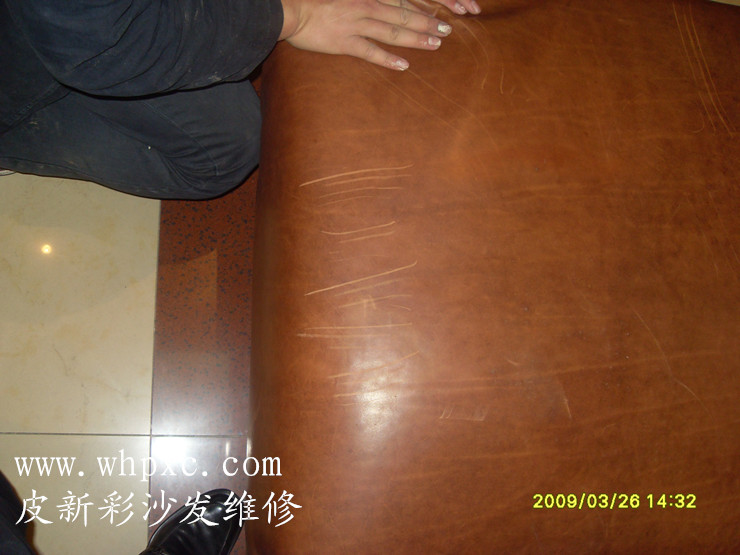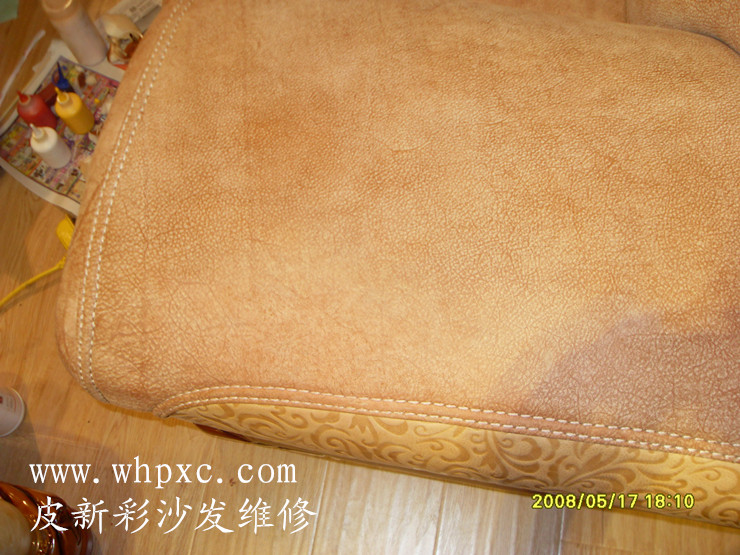 油蠟皮沙發維修,油蠟皮用手指一刮就會有劃痕,見了水皮子會變黑,如果維修方法不對很容易修壞,80%的修皮師傅不敢修油蠟皮,我們用專業的材料給它加脂、揉搓、點色,做手感,可以恢復到90%,皮新彩沙發維修熱線:13995508166
