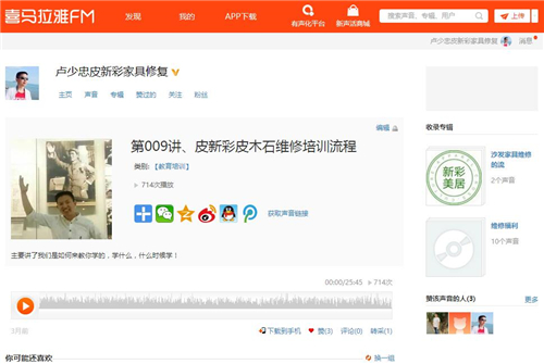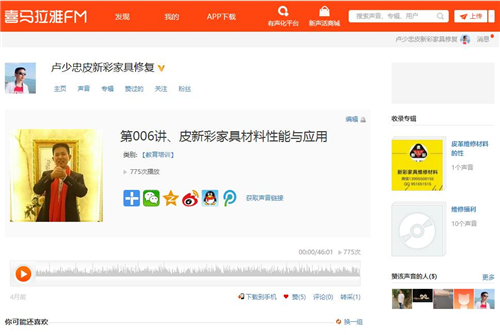 武漢皮新彩,做家具維修行業的傳道者。國內家具維修行業第一電臺,讓你了解最全面的家具維修理論和最有效的營銷方法。幫你制定最適合的經營模式。