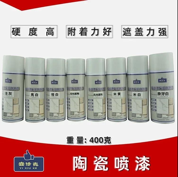 我們又做了一款油性雙組份的自噴陶瓷釉,有五六個顏色,啞光亮光面釉,這種操作方便,經(jīng)濟實惠,效果不錯,配合消霧劑能把霧點和接口控制到可接受的范圍。和水性陶瓷漆配合使用環(huán)保經(jīng)濟實用,修潔具和耐磨要求不高的墻磚完全沒問題。