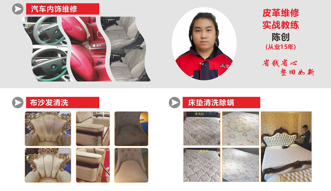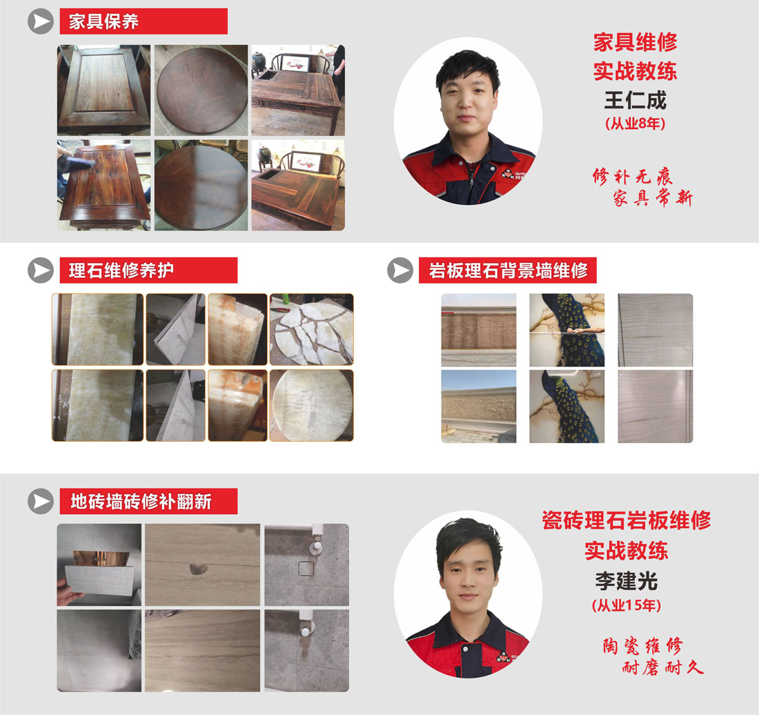 為了便于學習盧先生還親自拍攝了教學視頻和編寫了教科書,詳細介紹了皮革修補、翻新、改色、換皮、填充及木器的修補、翻新,家具貼膜,和理石維修等技術,木器部分有色粉、油膏、水性漆三種技術,邏輯清晰、內容全面,把家具維修理論和實踐推向了新的高度,填補了國內行業的空白。